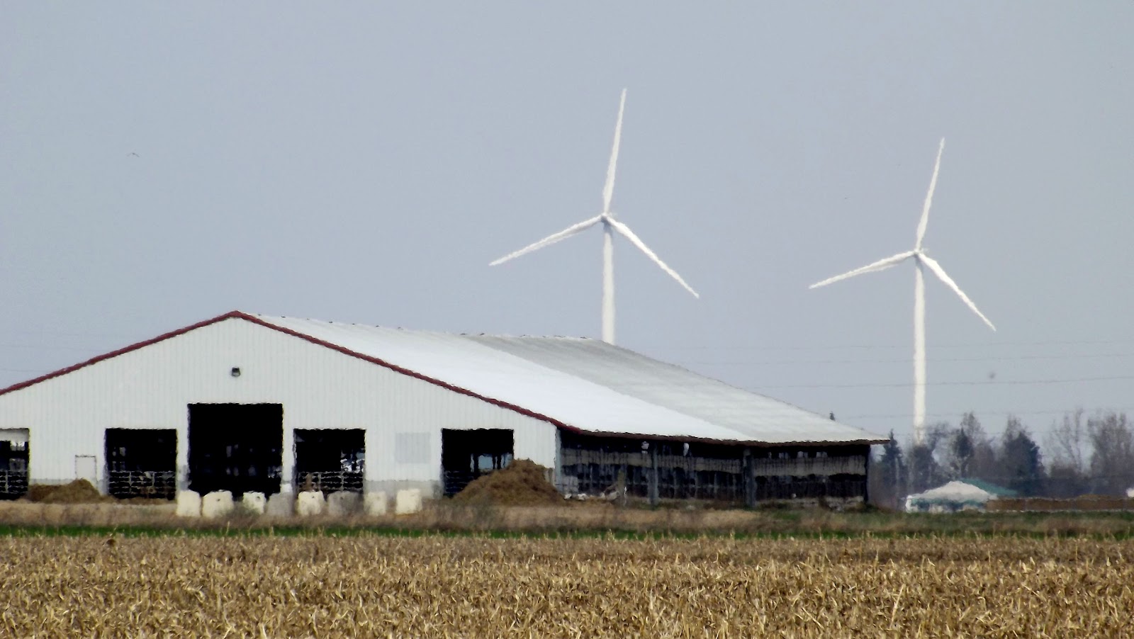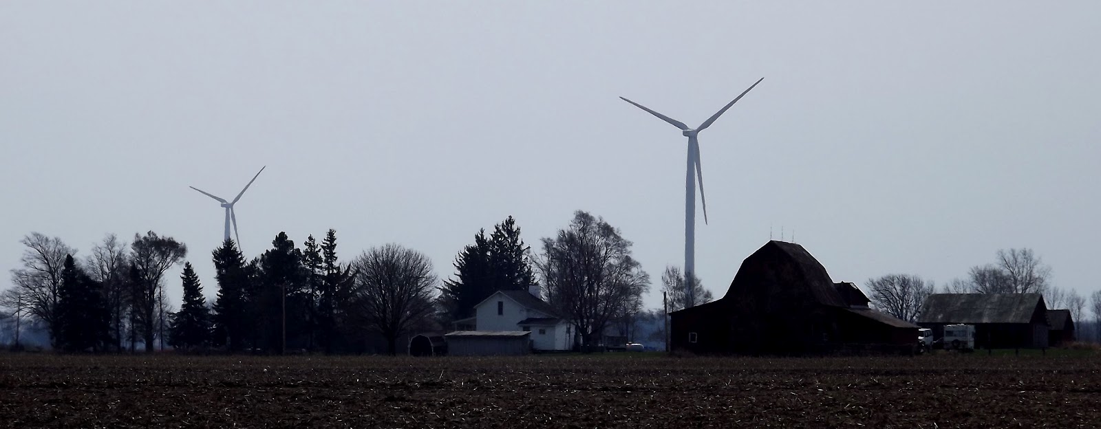 There is a wind farm in Mid-Michigan with over 130 gigantic wind turbines. It is located between Mount Pleasant and Alma adjacent highway 127 near Ithaca. The behemoths are over 400 feet tall from the ground to the tip of the highest point of the blade. Approaching the farm from the South, these huge windmills dwarf the forest below them. It is an awesome sight to see.