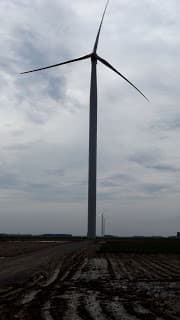 wind farm in Mid-Michigan with over 130 gigantic wind turbines. It is located between Mount Pleasant and Alma adjacent highway 127 near Ithaca. The behemoths are over 400 feet tall from the ground to the tip of the highest point of the blade. Approaching the farm from the South, these huge windmills dwarf the forest below them. It is an awesome sight to see.