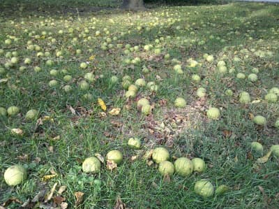 Every year in September my yard gets littered with what looks like hundreds of tennis balls. They are not tennis balls, they are walnuts. They are the product of several huge black walnut trees in my front yard at the Munro House Bed and Breakfast in Jonesville Michigan. The same trees that give awesome shade all summer, produce a plethora of debris in the month of September and early October. The nuts that fall in the street make a sound like gunshots when they are run over by cars. The neighbor kids enjoy the popping noise.